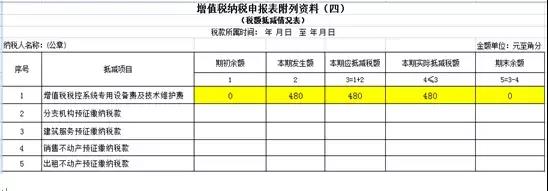 需要将当期发生的税控设备费及服务费抵减金额填写在第1栏第2列及第3列中,将本期需要使用抵税的金额填写在第4列中。若本期应纳税额小于可抵减金额,将本期应纳税额填写在第4列中,余额填报在第5列中。