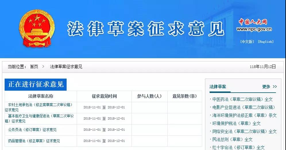 2018年11月1日至12月1日征求意见